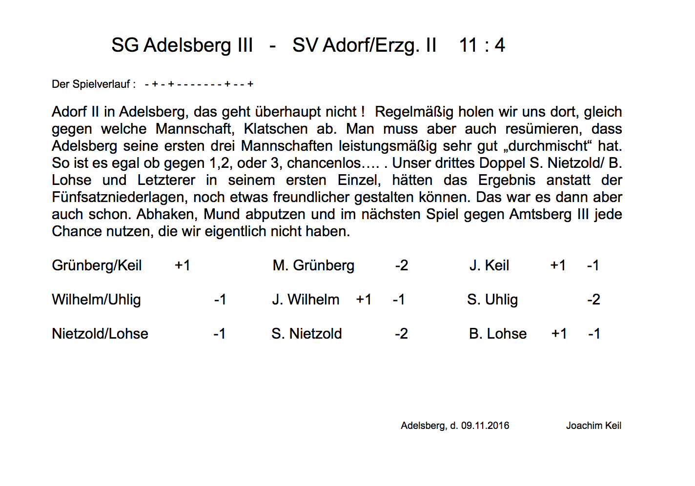Punktspielbericht 1. Stadtklasse Kleinolbersdorf – Adorf II 4:11 (16.11.17)