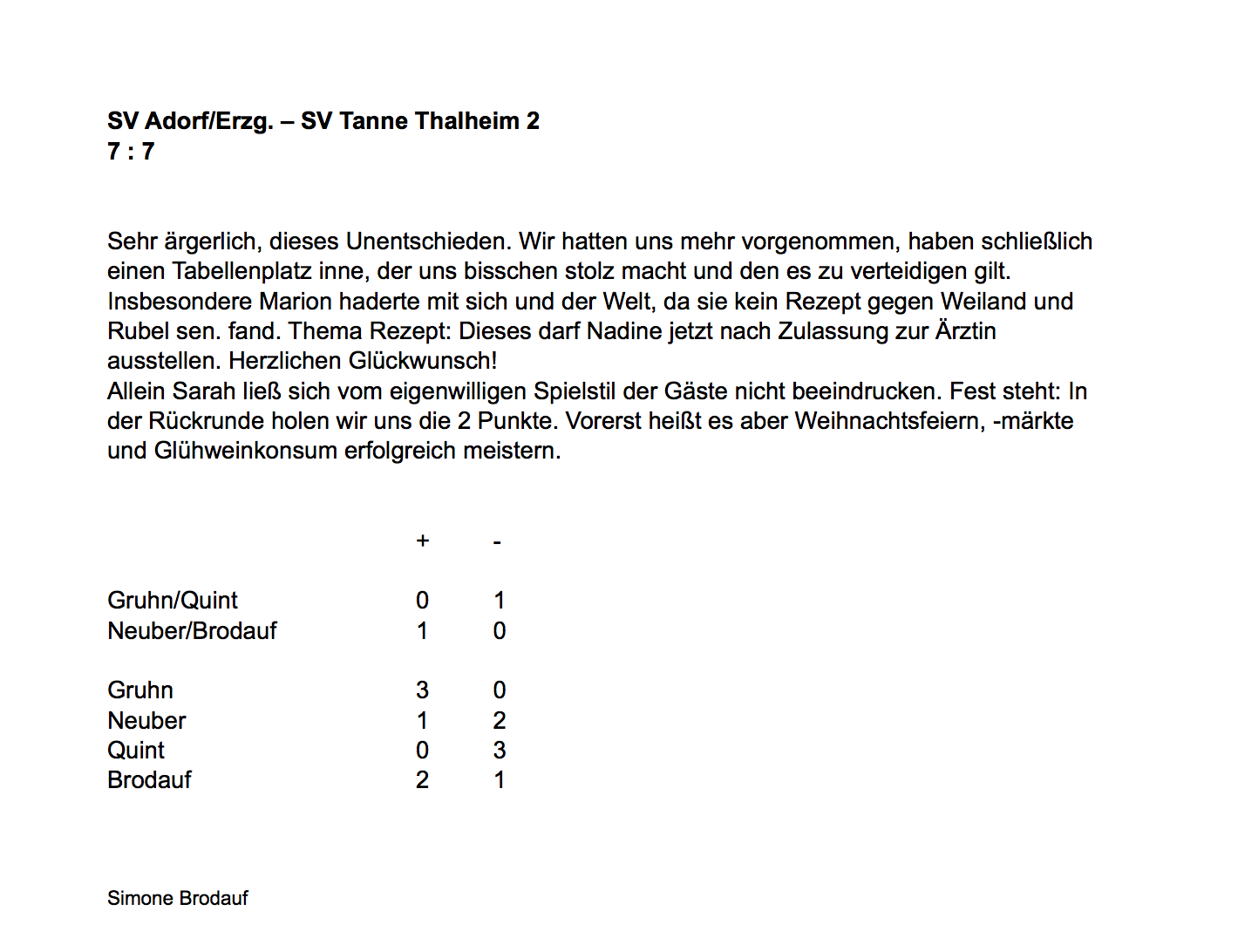 • Punktspielbericht Bezirksliga Damen Adorf – Thalheim 7:7 (05.03.17)