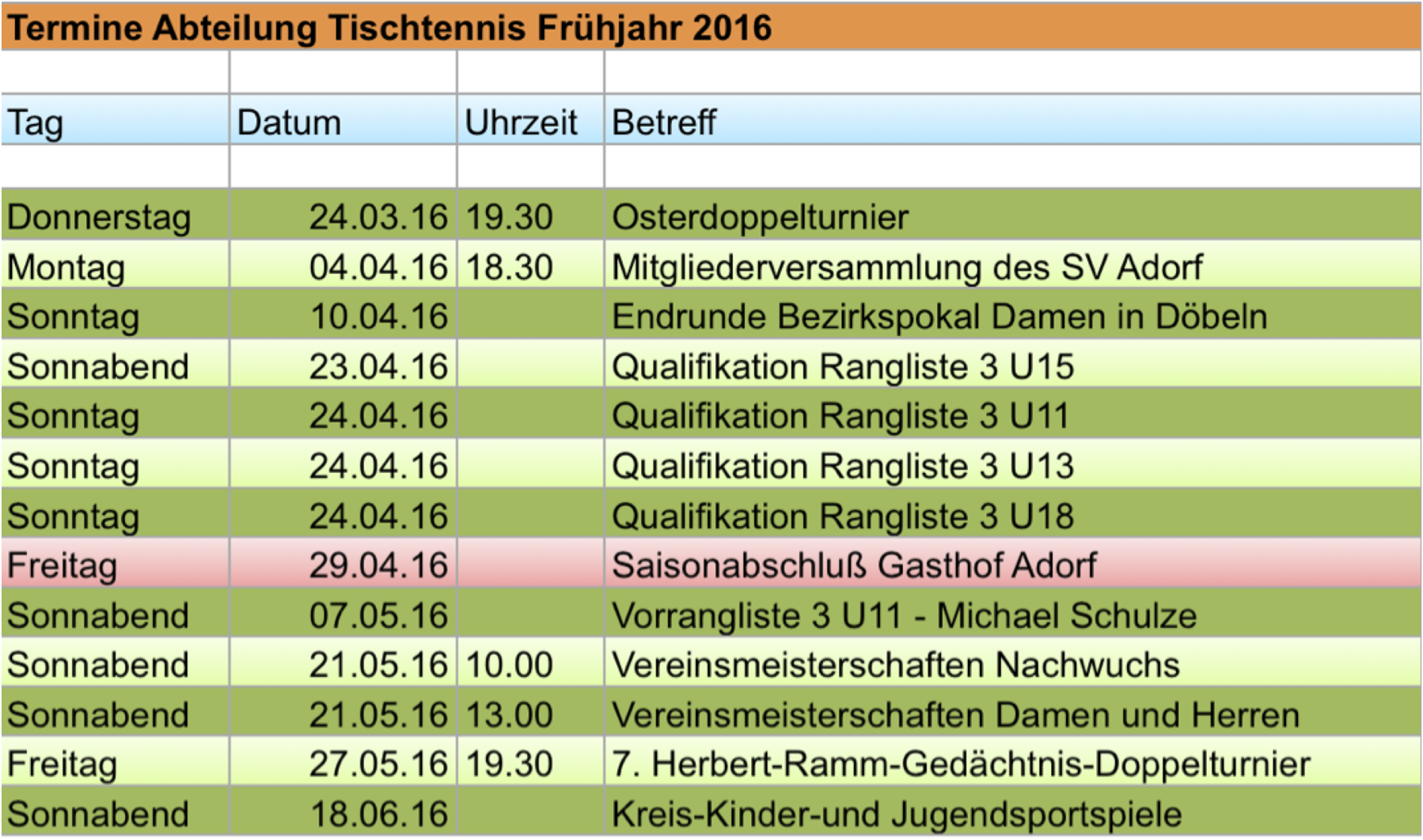 - donnerstags 19.00 - 22.00 Uhr Ort: Turnhalle Grundschule Adorf (Beginn in der Punktspielzeit 18:45)