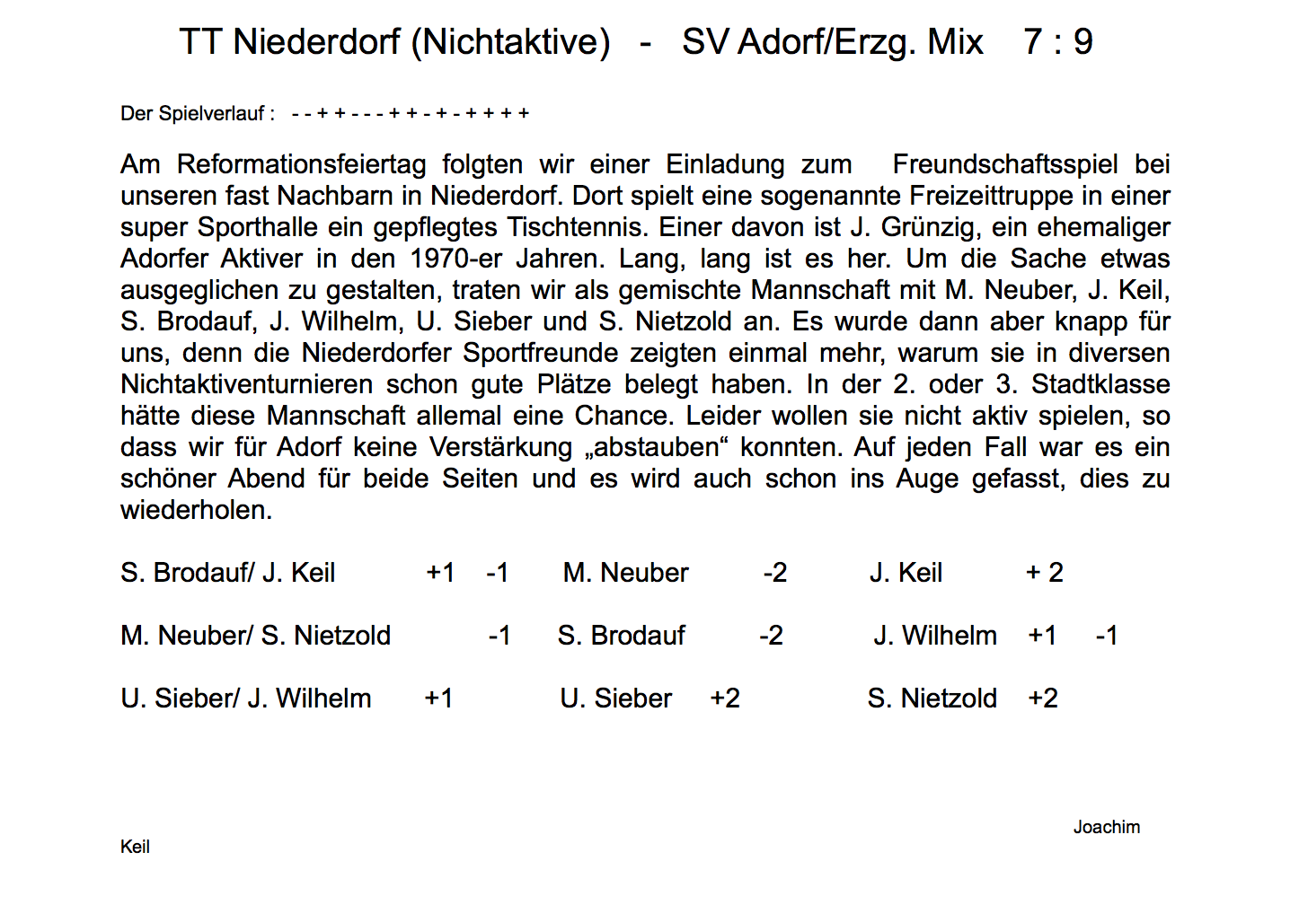 Freundschaftsspiel am Reformationstag gegen Niederdorf