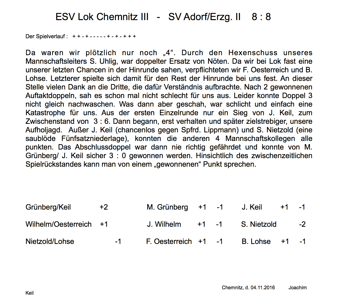 • Punktspielbericht 1. Stadtklasse Kleinolbersdorf – Adorf II 4:11 (16.11.17)